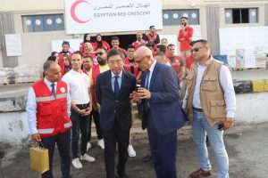 محافظ شمال سيناء والسفير السنغافوري يطلعان على مخازن مساعدات الهلال الأحمر بالعريش