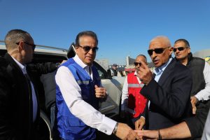 محافظ شمال سيناء ووزير الصحة يتابعان ميدانيا آليات دخول المساعدات لغزة عبر معبر رفح