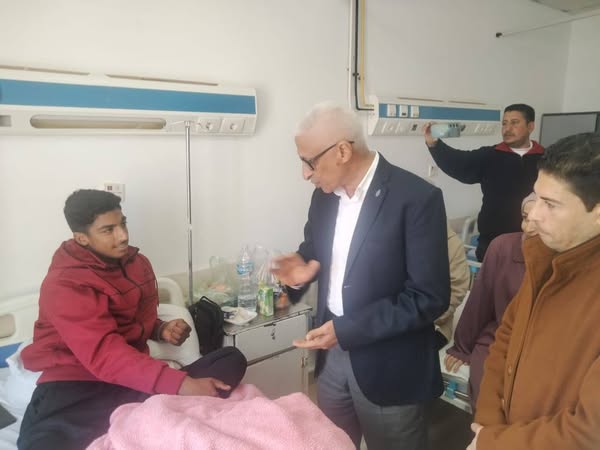 محافظ شمال سيناء يزور الجرحي الفلسطينيين بمستشفي بئر العبد التخصصي