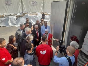 واستعرض المحافظ أمام الوفد حجم الدعم الإنساني الذي تتولاه الدولة المصرية عبر مركز الإغاثة بالعريش، موضحًا أن فرق الهلال الأحمر تعمل على مدار الساعة لتجهيز الشحنات الإغاثية التي تشمل الأغذية والأدوية والمستلزمات الطبية، تمهيدًا لدخولها إلى قطاع غزة بالتنسيق مع الجهات الدولية المعنية.