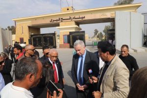 اصطحب اللواء الدكتور خالد مجاور، محافظ شمال سيناء، السفير الألماني لدى القاهرة يورجن شولتس، والوفد المرافق له، في جولة ميدانية إلى معبر رفح البري، لمتابعة سير العمل وجهود الإغاثة المقدمة إلى قطاع غزة.