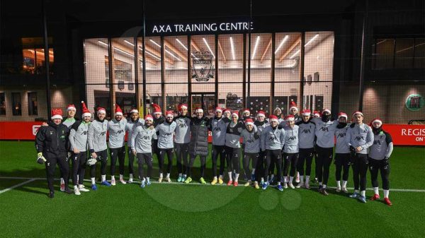 احتفال صلاح ولاعبي ليفربول بالكريسماس