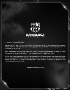 وقال النادي في بيان رسمي: “نشعر بخيبة أمل عميقة، ونطلب من الجميع الدعاء لروح ماريو ومنحه القوة لعائلته في هذه اللحظة المؤلمة”.