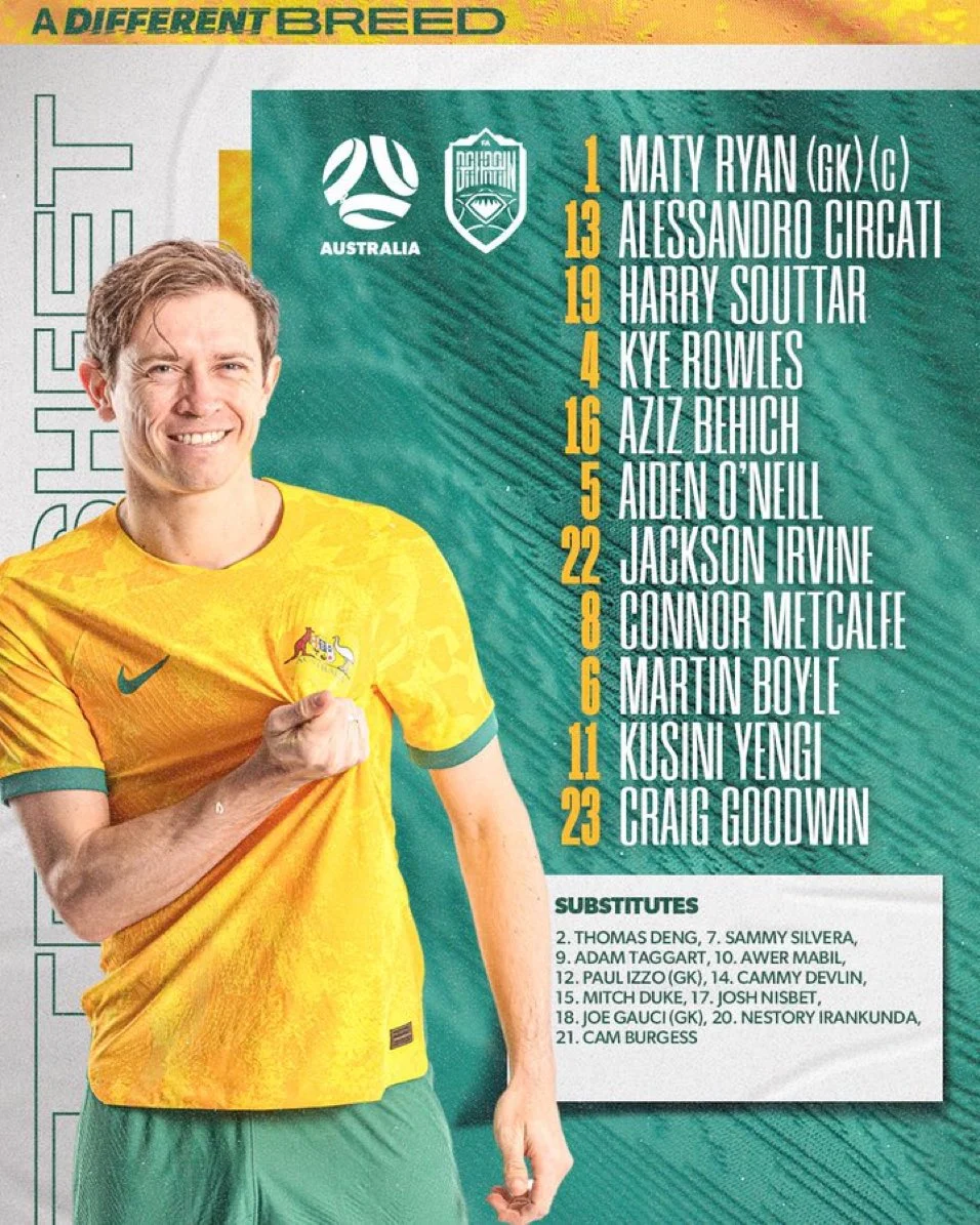 وفي الدقيقة 77، تلقت أستراليا ضربة موجعة بطرد اللاعب كوسيني ينجي بعد تدخل عنيف على أحد لاعبي البحرين، مما صعّب من مهمة الفريق الأسترالي في العودة إلى المباراة.