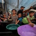طوابير الجوع تمتد في مخيم النصيرات وسط غزة.. صور