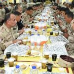 وزير الدفاع يشارك مقاتلي الجيش الثاني الميداني وطلبة المنشآت التعليمية وجبة الإفطار