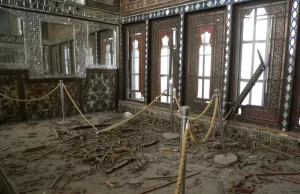 قصر جهل ستون: تضرر القاعة ذات الأعمدة والفسيفساء المعقدة.