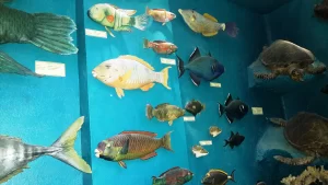 داخل المعهد، لا تزال مجموعات الكائنات البحرية المحنطة تثير دهشة الزوار والباحثين؛ فهي ليست مجرد معروضات، بل سجل علمي حي يوثق تاريخ الشعاب المرجانية، والأسماك النادرة، والأنواع التي قد لا تُرى اليوم إلا في الكتب أو المخازن العلمية.